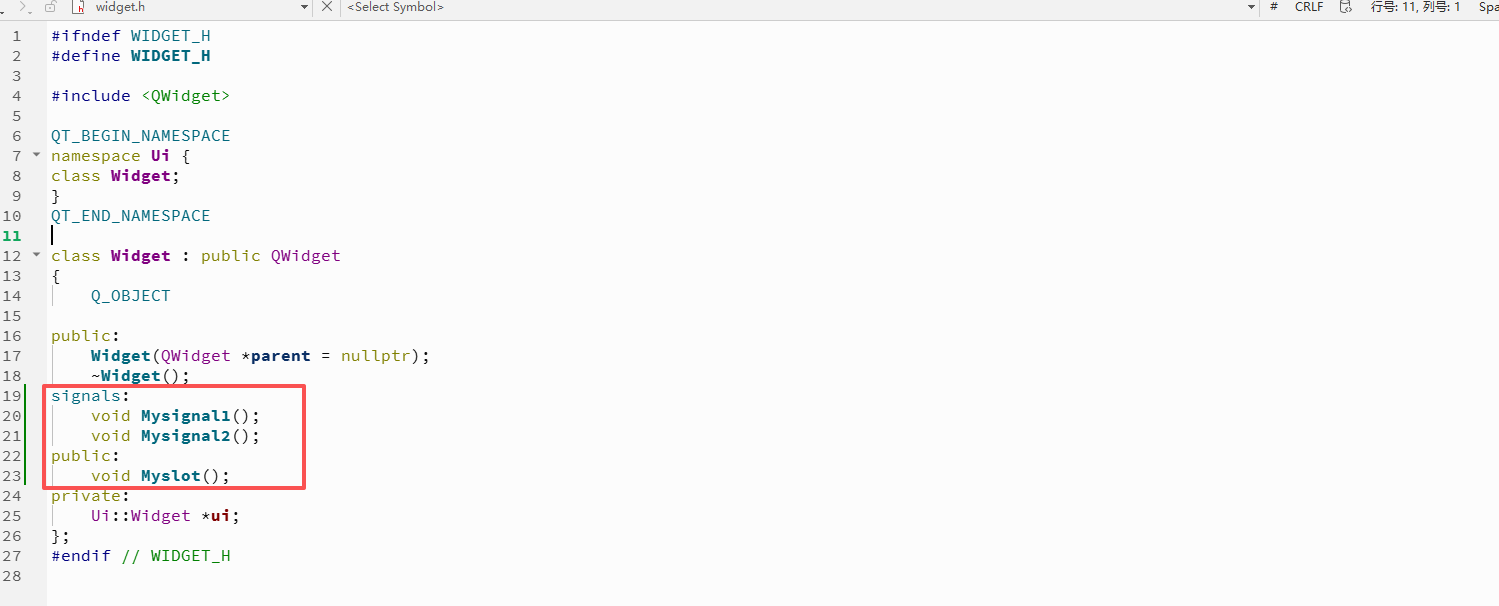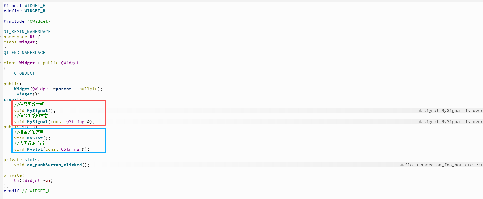 信号函数的定义是Qt自动在编译程序之前生成的. 编写 Qt 应⽤程序的程序猿⽆需关注.