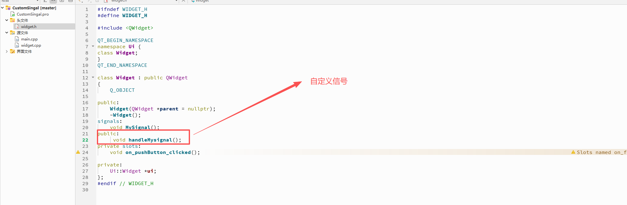 }Qt中也允许自定义信号,但是其实比较少见,实际开发中很少会需要自定义信号,因为