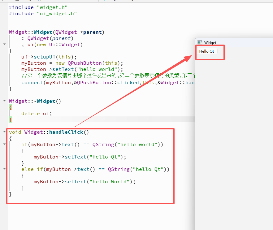 connect(myButton,&QPushButton::clicked,this,&Widget::handleClick);