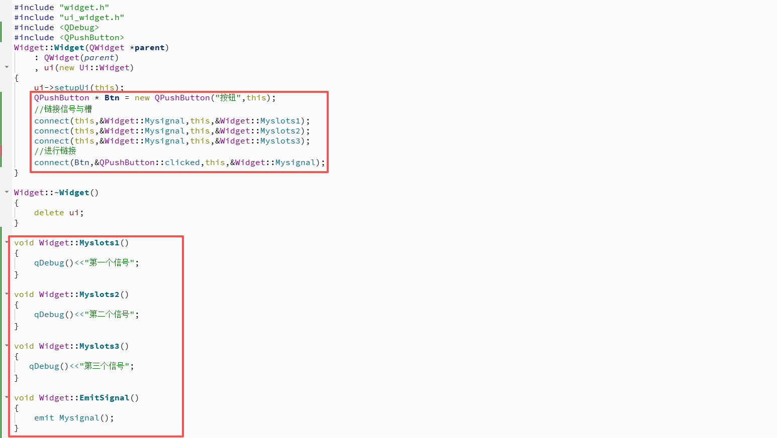 connect(this,&Widget::Mysignal,this,&Widget::Myslots3);