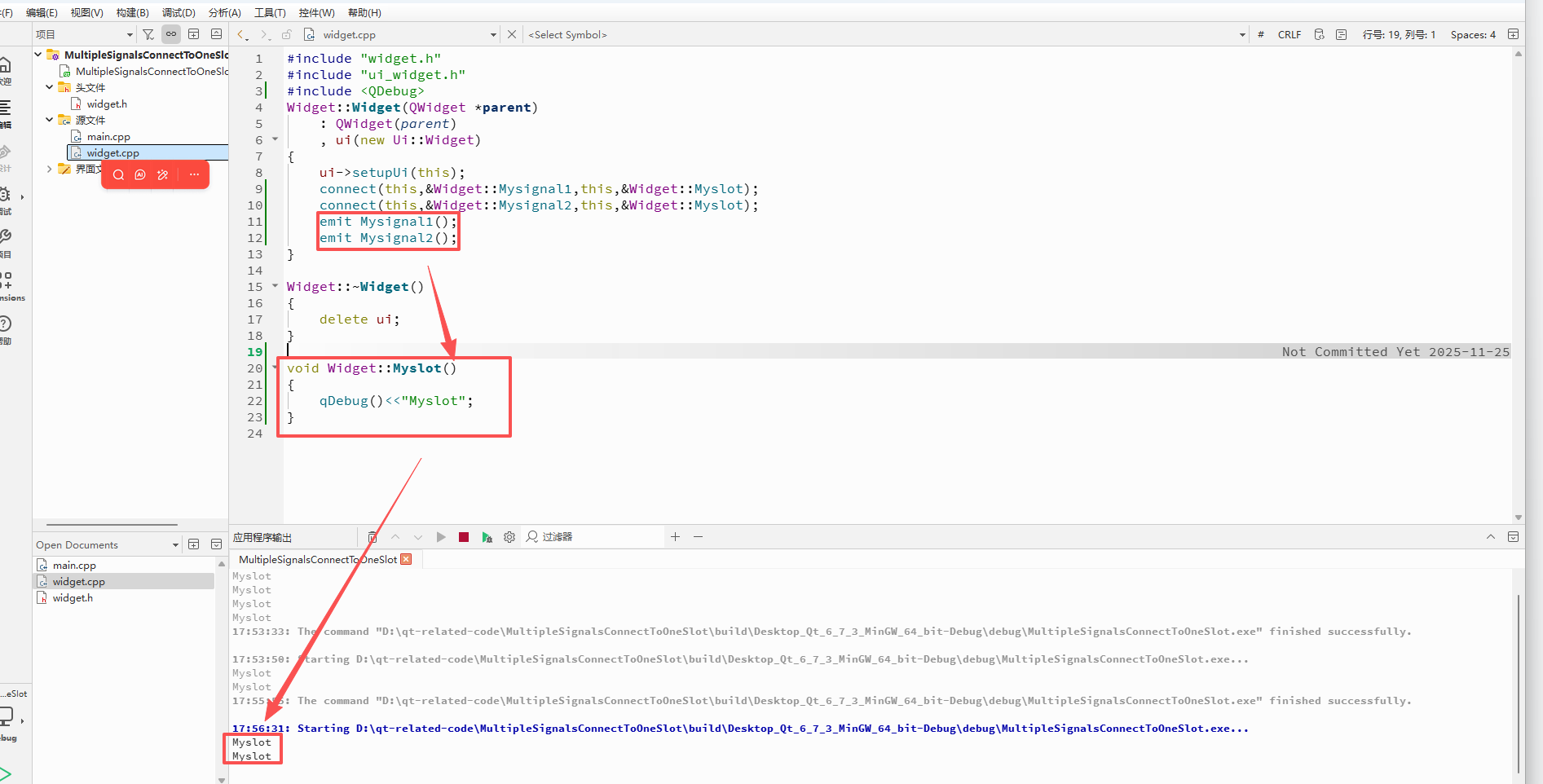 connect(this,&Widget::Mysignal,this,&Widget::Myslots1);