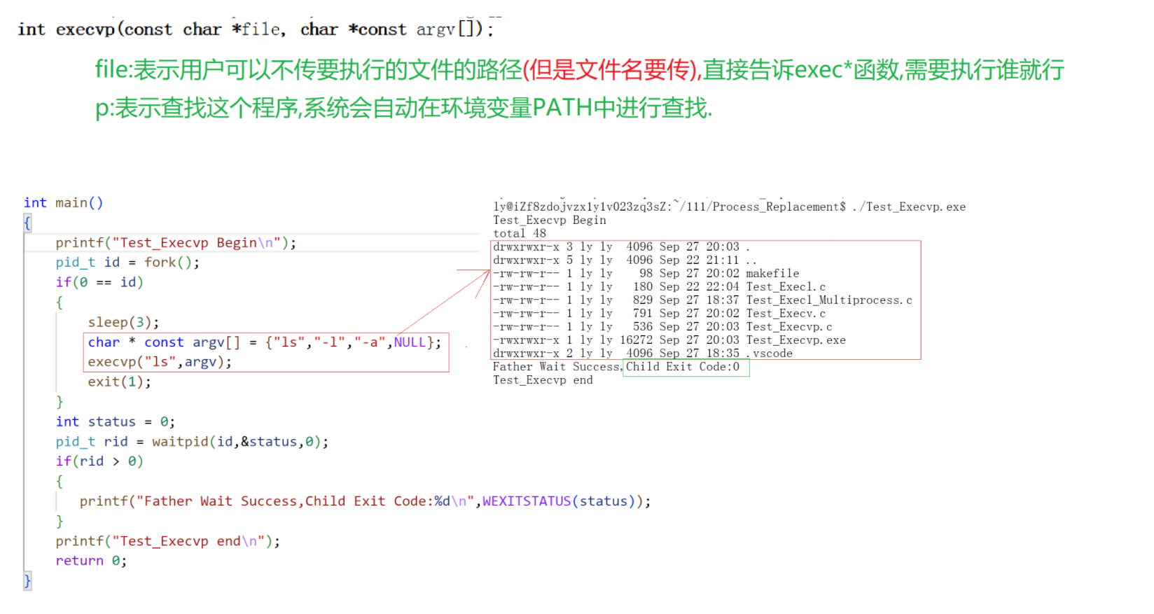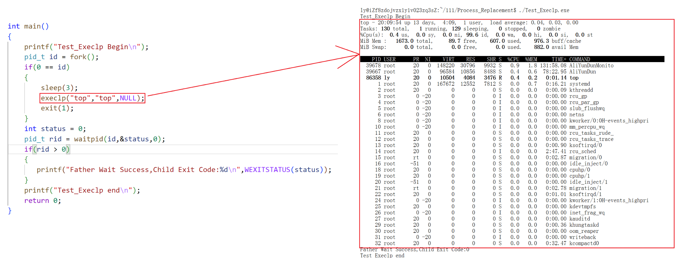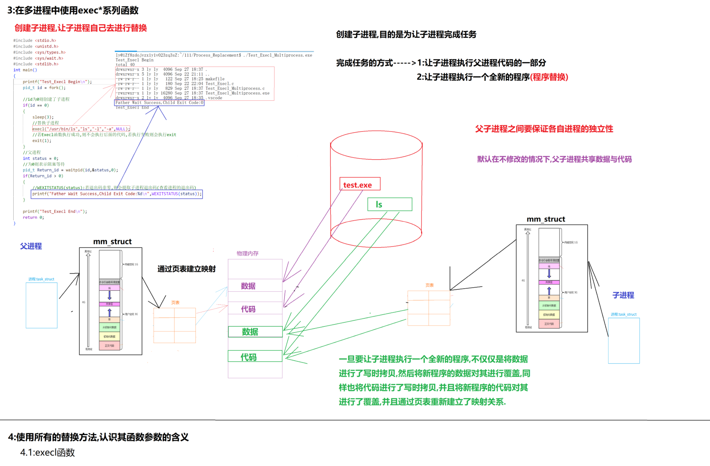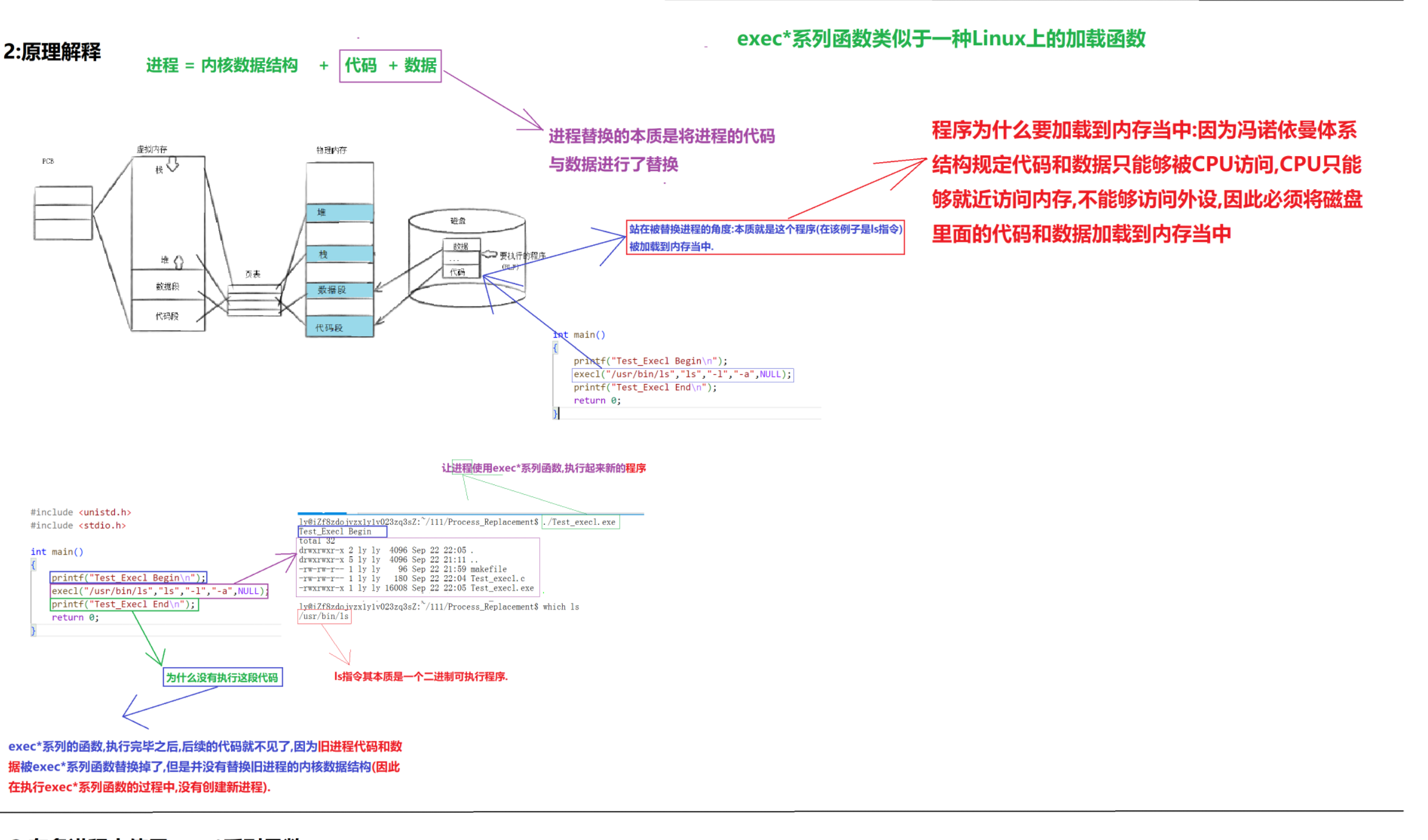 所以exec*系列的函数,执行完毕以后,后续的代码就不见了,因为旧进程代码和数据被exec*系列函数替换掉了,但是并没有替换旧进程的内核数据结构(因此在执行exec*系列函数的过程中,没有创建新进程).