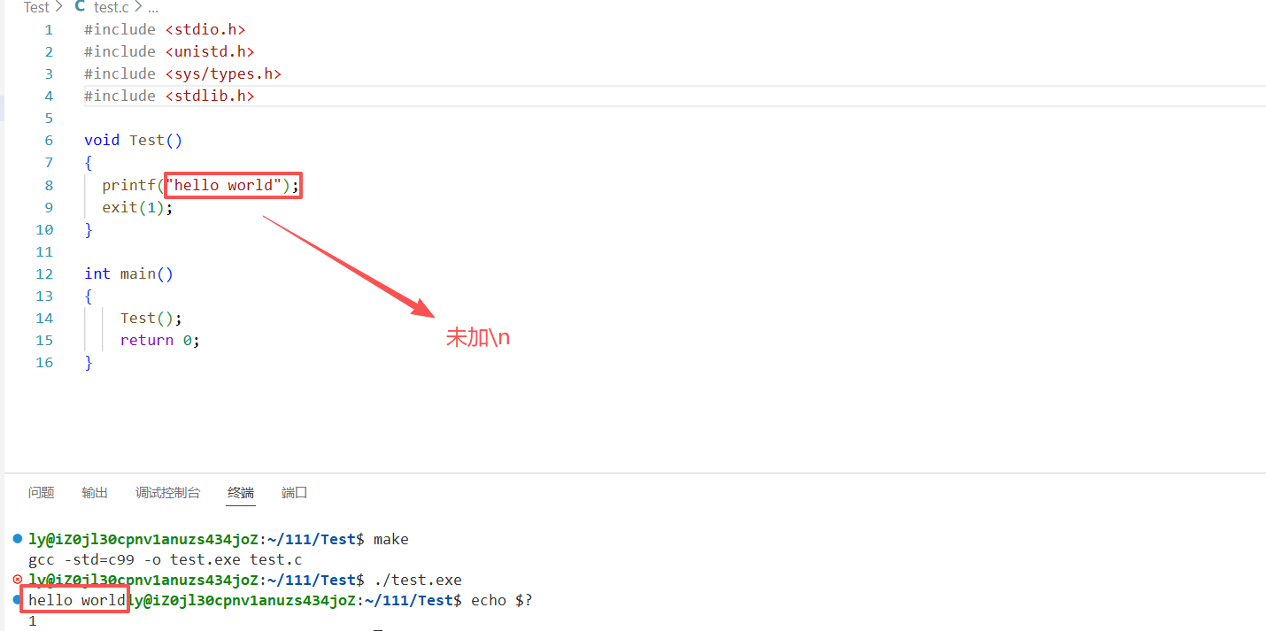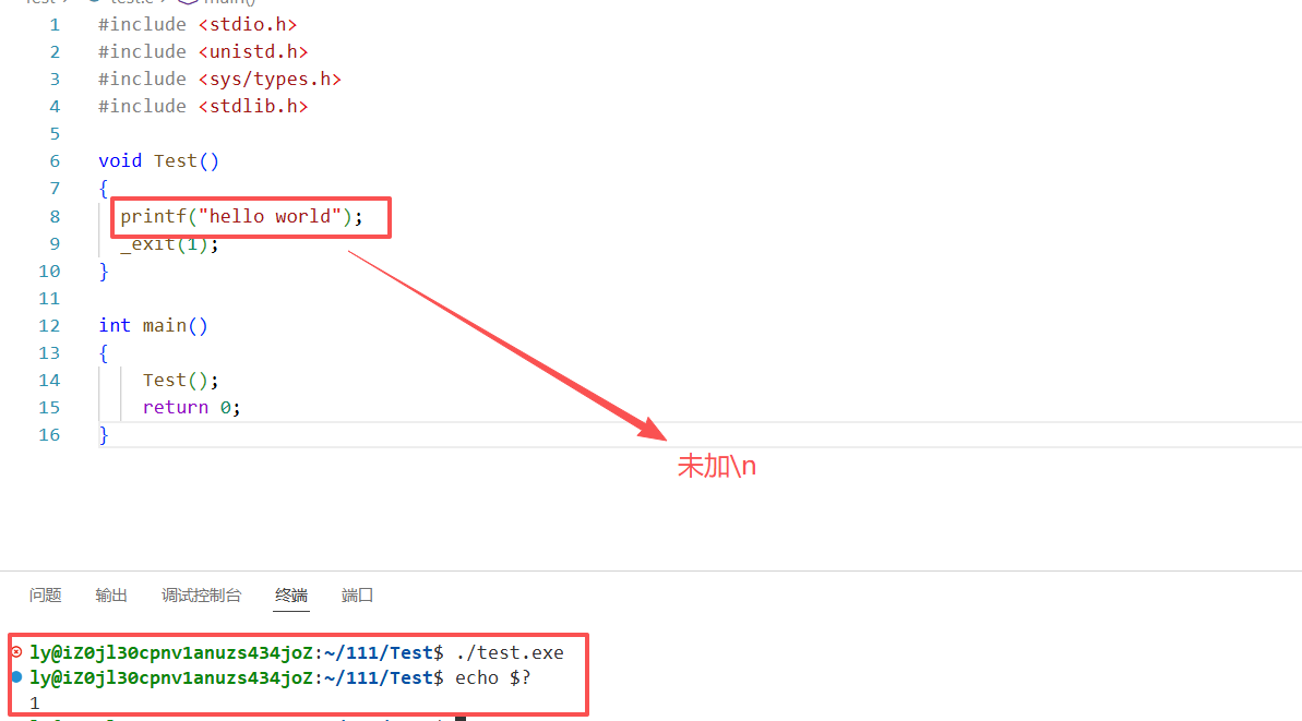 上述代码使用exit终止进程前会将缓冲区当中的数据输出.