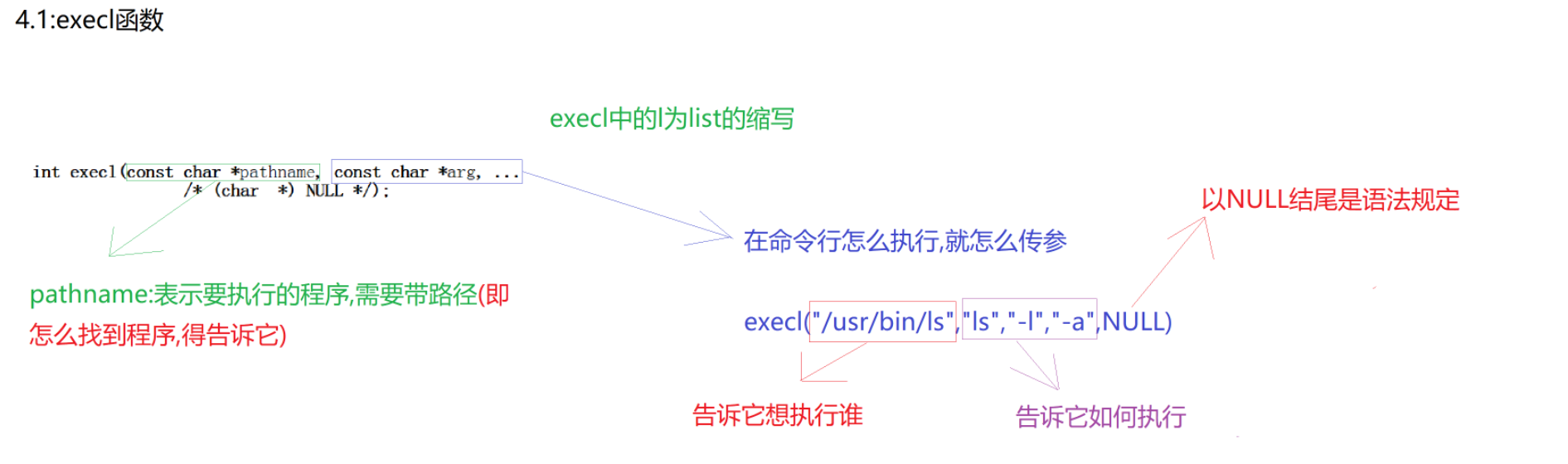 execl("/usr/bin/ls","ls","-l","-a",NULL);
