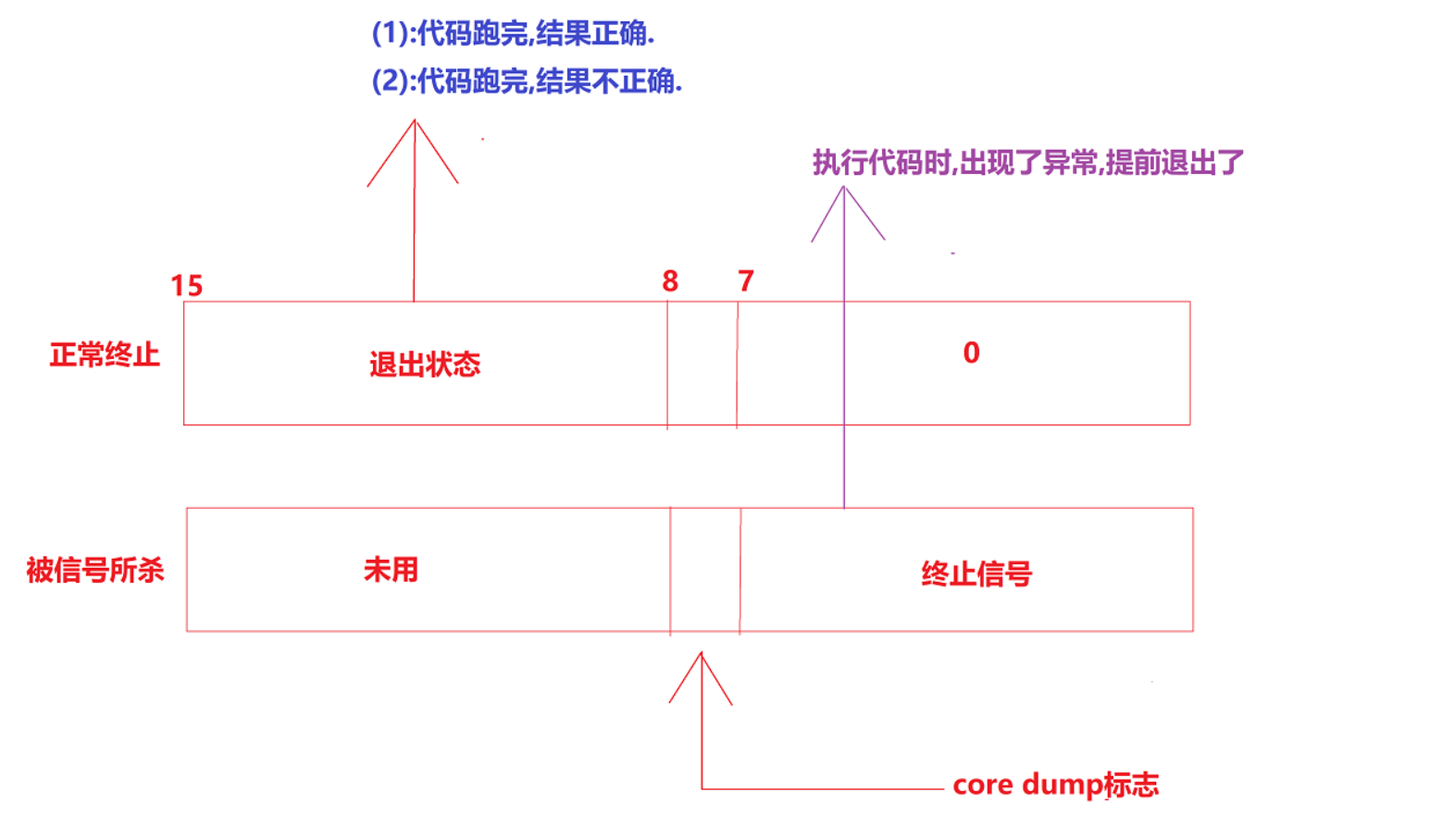 总结:衡量一个进程退出,我们只需要两个数字:退出码与退出信号