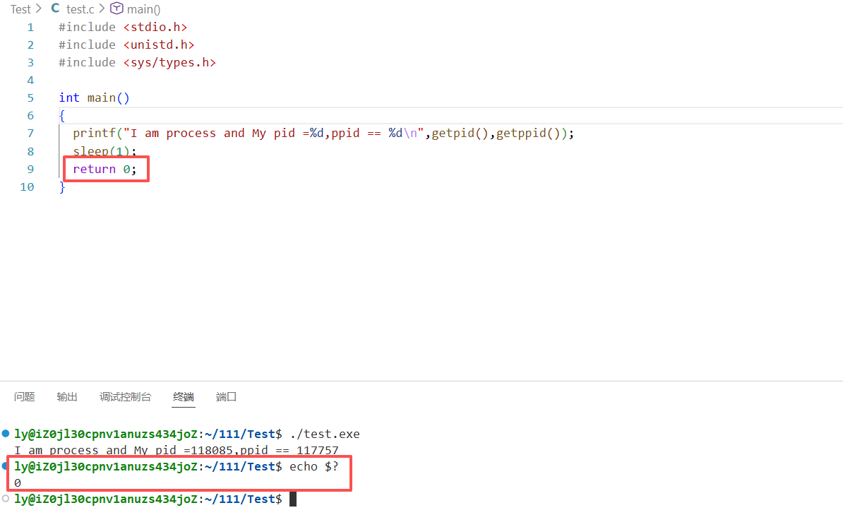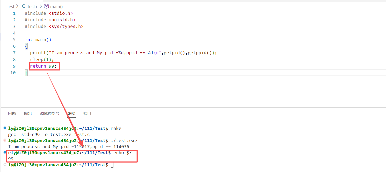 当我们的代码运行起来就变成了进程,当进程结束后main函数的返回值实际上就是该进程的进程退出码,我们可以使用echo $?命令查看最近一次进程退出的退出码信息.