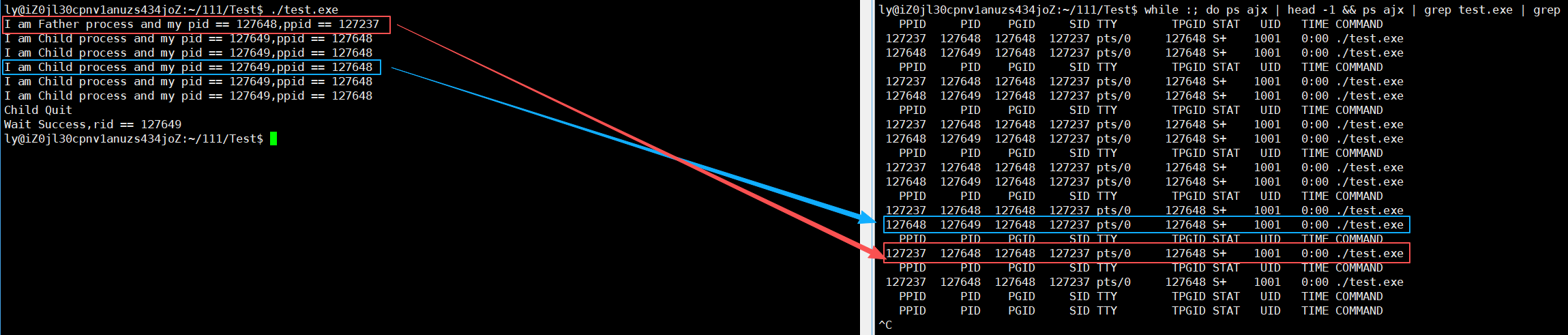 printf("I am Father process and my pid == %d,ppid == %d\n",getpid(),getppid());