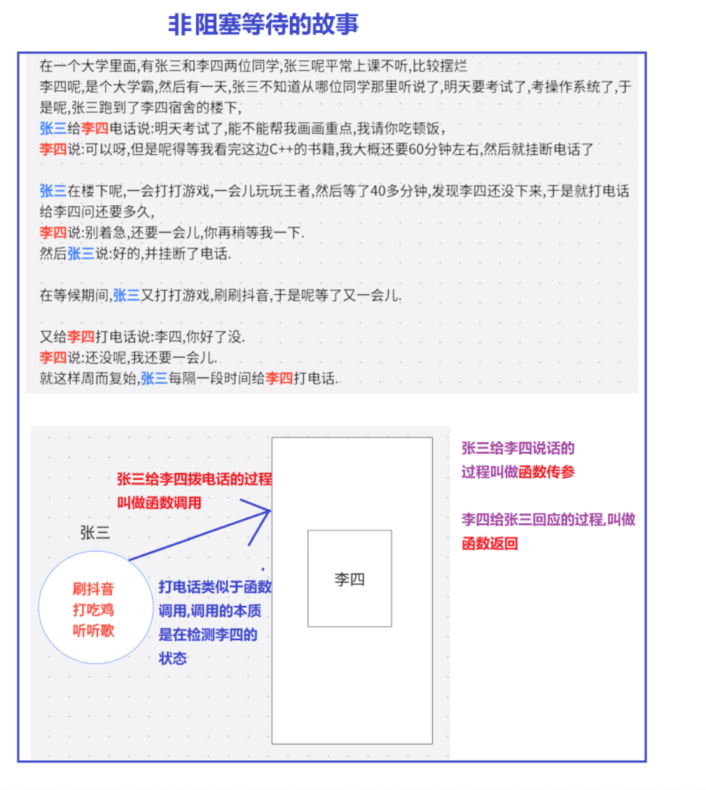 父进程没有一直等待子进程退出,而是当子进程未退出时父进程可以做一些自己的事情,当子进程退出时再读取子进程的退出信息------>非阻塞等待.