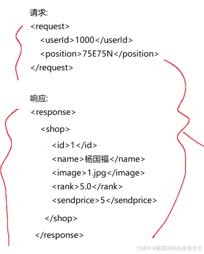 图中的标签都是自己定义的,可读性非常好。 优点:结构化强、自描述性好,支持版本兼容和复杂元数据,成熟生态(解析工具 / 验证机制完善)。 缺点:冗余度高(标签占比大),消耗更多的带宽(带宽很贵),解析速度慢,文件体积大,不适合高并发场景。