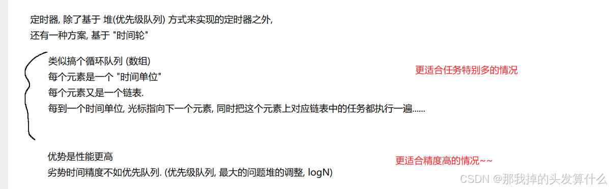 1.需要创建一个类,表示定时器任务。 2.需要使用一个集合类来管理多任务。 此处优先级队列最合适,采用时间作为优先级。不适用阻塞队列,因为定时器是精准按照时间来等待执行任务,并非依赖阻塞。 3.实现schedule方法将任务添加到队列中 4.额外创建一个线程负责执行队列中的任务。此处的线程与线程池的不同,线程池是只要队列不为空就一直执行任务。此处则是检查队首元素的时间限制,到了时间就执行,没到时间就不执行。