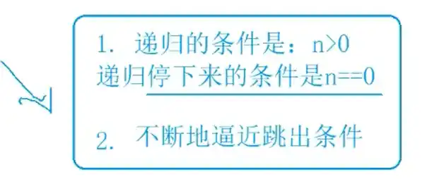 满足递归的条件,递归的条件为n>0,并不是平白无故就开始就递归,停下来的条件是n=0,并且n逐渐变小靠近停下来的条件,满足n等于0就停止了,这道题很好的体现了大事化小的思想