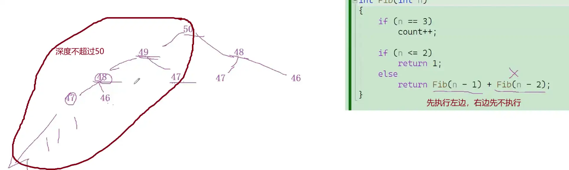 }但是效率并不高,比如计算第40位斐波那契数时,需要计算第三位斐波那契数3千多万次,耗时间,效率低