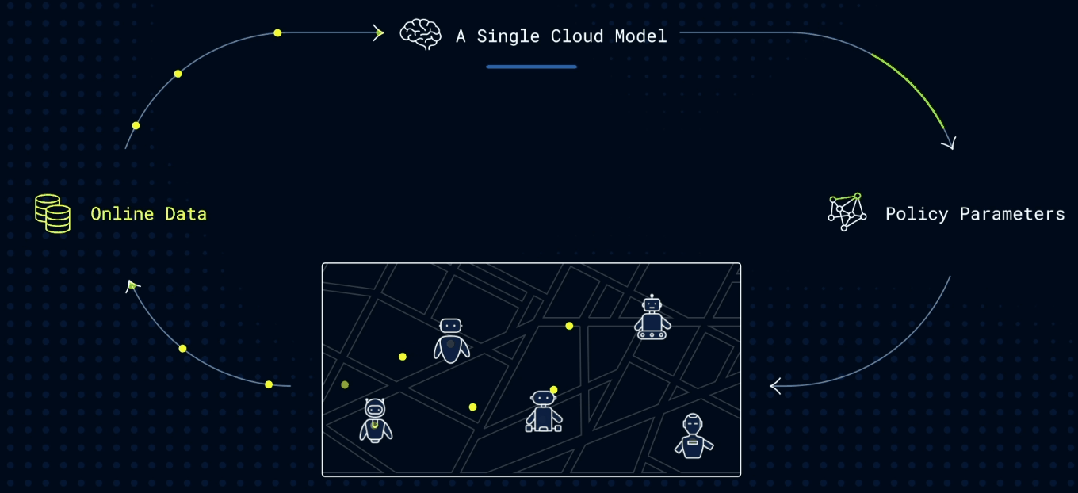 这种空间上的并行,大幅拓宽了真实世界中状态 - 动作分布的覆盖面,让系统能瞬间接触到极其广泛的场景,直接避开了单机学习容易陷入的局部瓶颈。