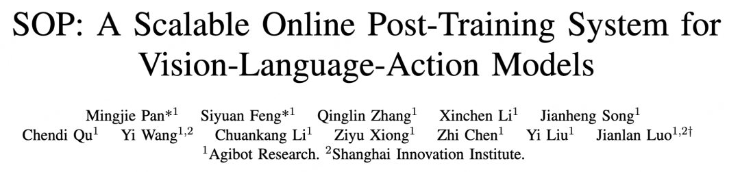 为了实现这一跨越,智元具身研究中心提出了 SOP(Scalable Online Post-training)框架。