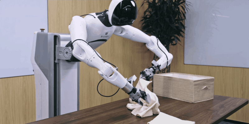 这就好比在同一时间开启了多个「平行现实」:有的机器人在尝试叠衣服,有的在整理杂货,有的在处理纸盒。