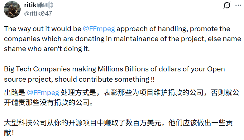 他还在这条评论中表达了担忧:「这个项目在没有人再受雇来维护它的情况下,最终只会变成一个无人维护、被遗弃的软件。」
