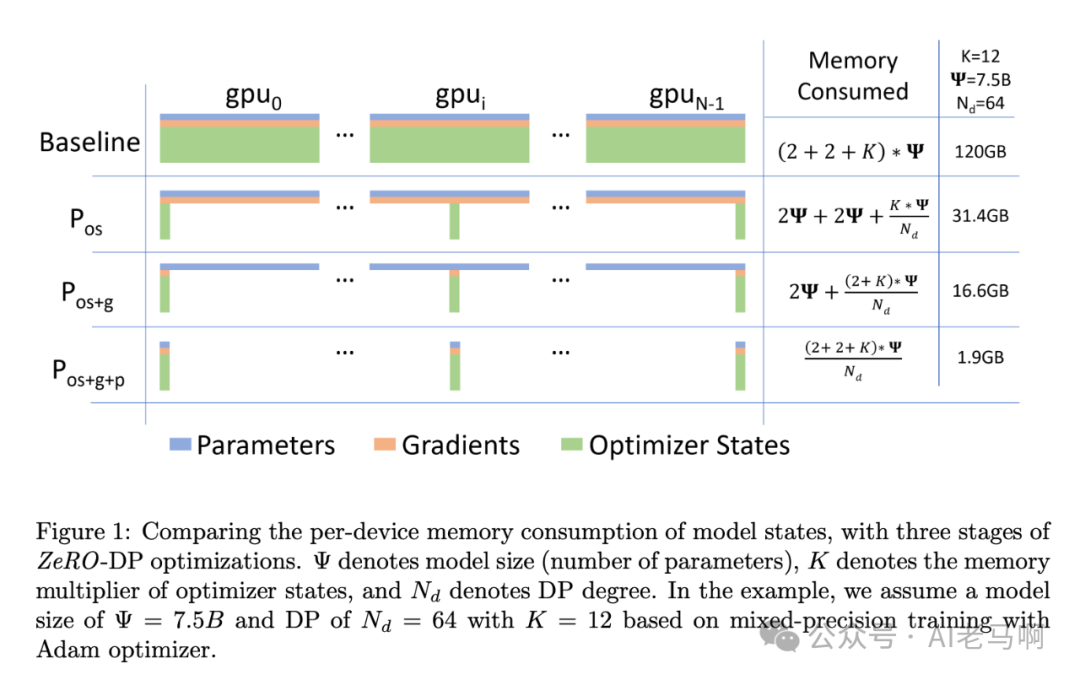 对显存的进一步优化也就从这三方面下手,即零冗余优化,分为三个层次: