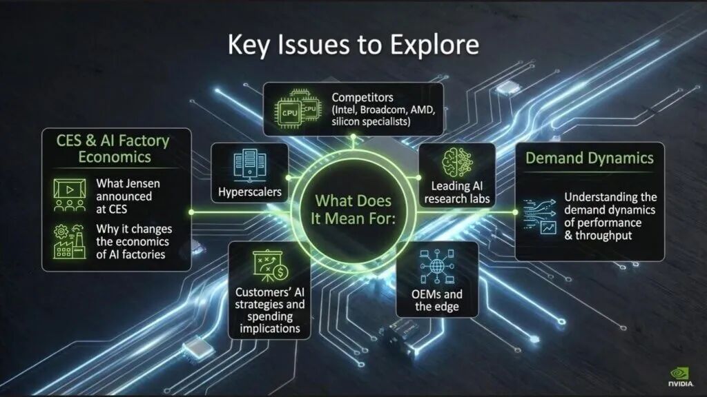 最后,我们将把CES公告转化为跨多个类别参与者的竞争影响,包括同时是客户的供应商。共同的主题是竞争单位已从芯片转移到系统、机架,最终是token经济。这种转变改变了现有者的生存经济、专业人士的机会以及客户策略的紧迫性。