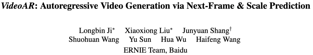 [1] VideoAR: Autoregressive Video Generation via Next-Frame & Scale Prediction