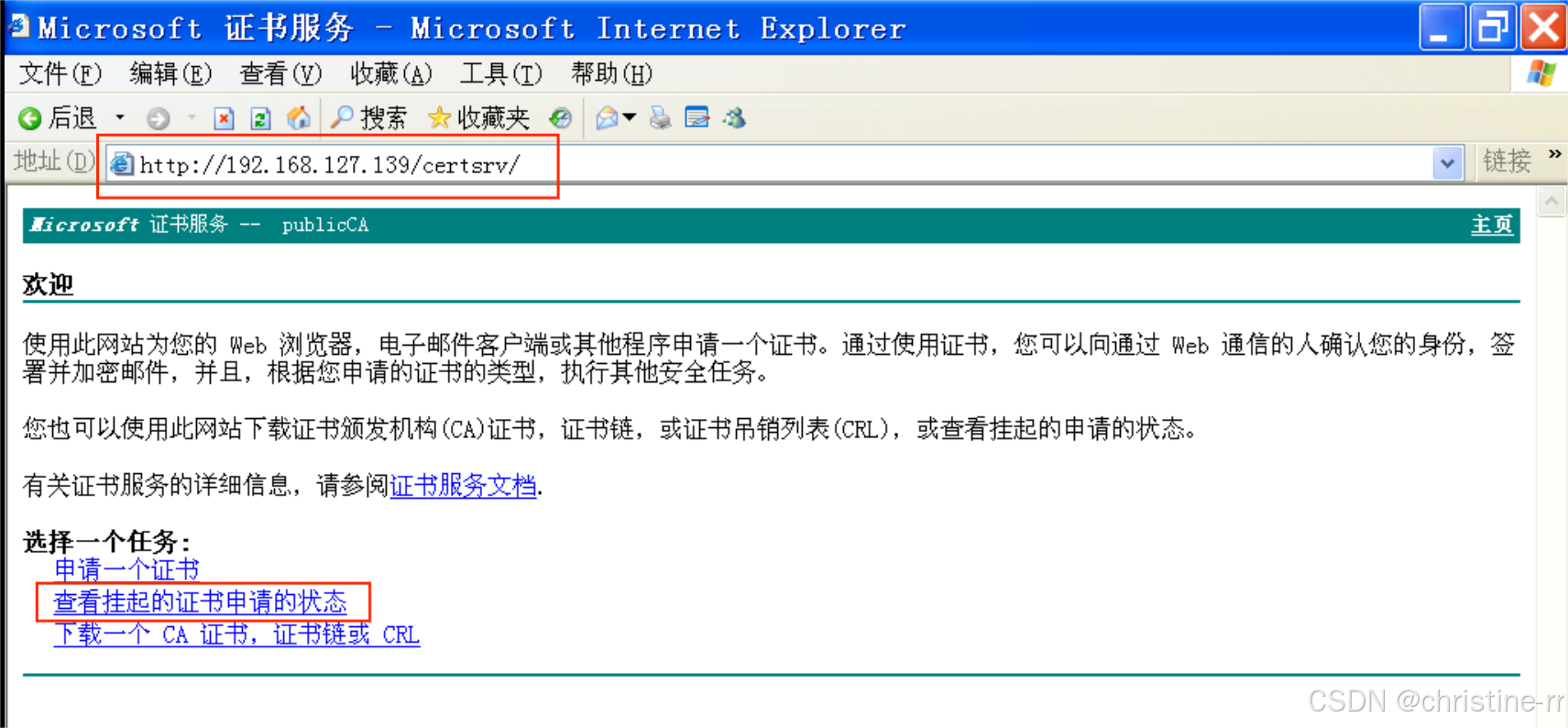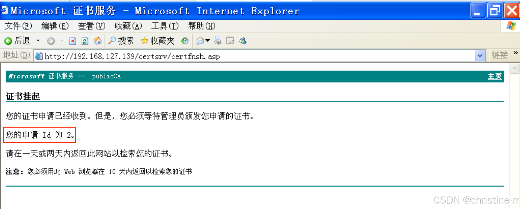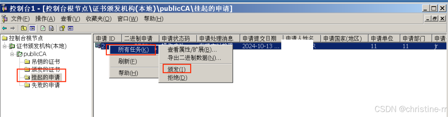 回到Windows Server2003证书服务器上,在挂起的申请上颁发证书