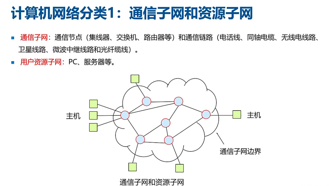 通信子网与用户资源子网 | 通信子网包含通信节点和链路,用户资源子网包含服务端与客户端 | 两者区别与组成 | 🌟 |