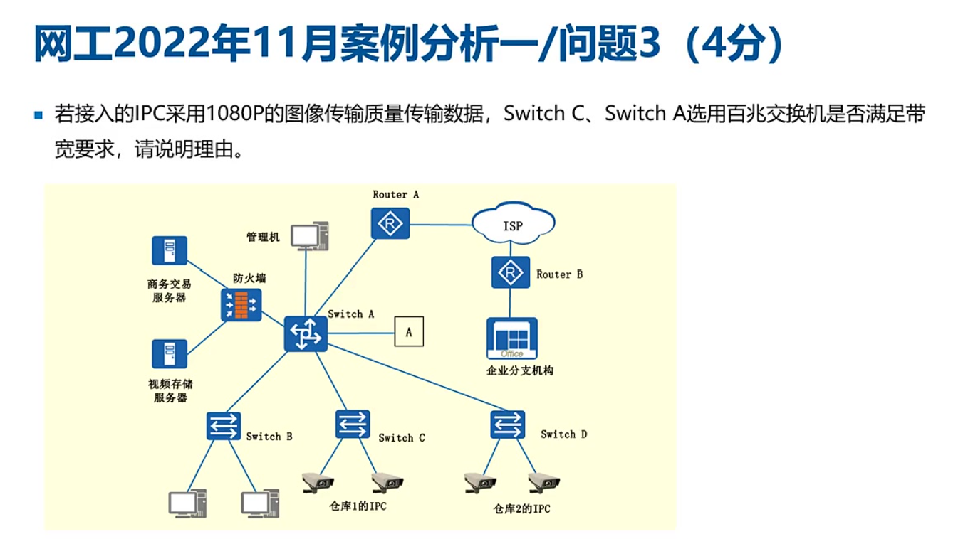 视频监控应用分析 | 仓储企业网络拓扑分析,百兆交换机是否满足带宽要求 | 带宽计算与交换机选择 | 🌟🌟🌟🌟 |