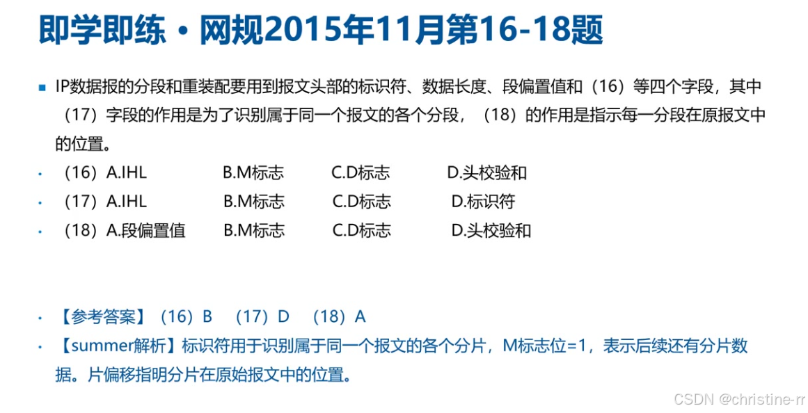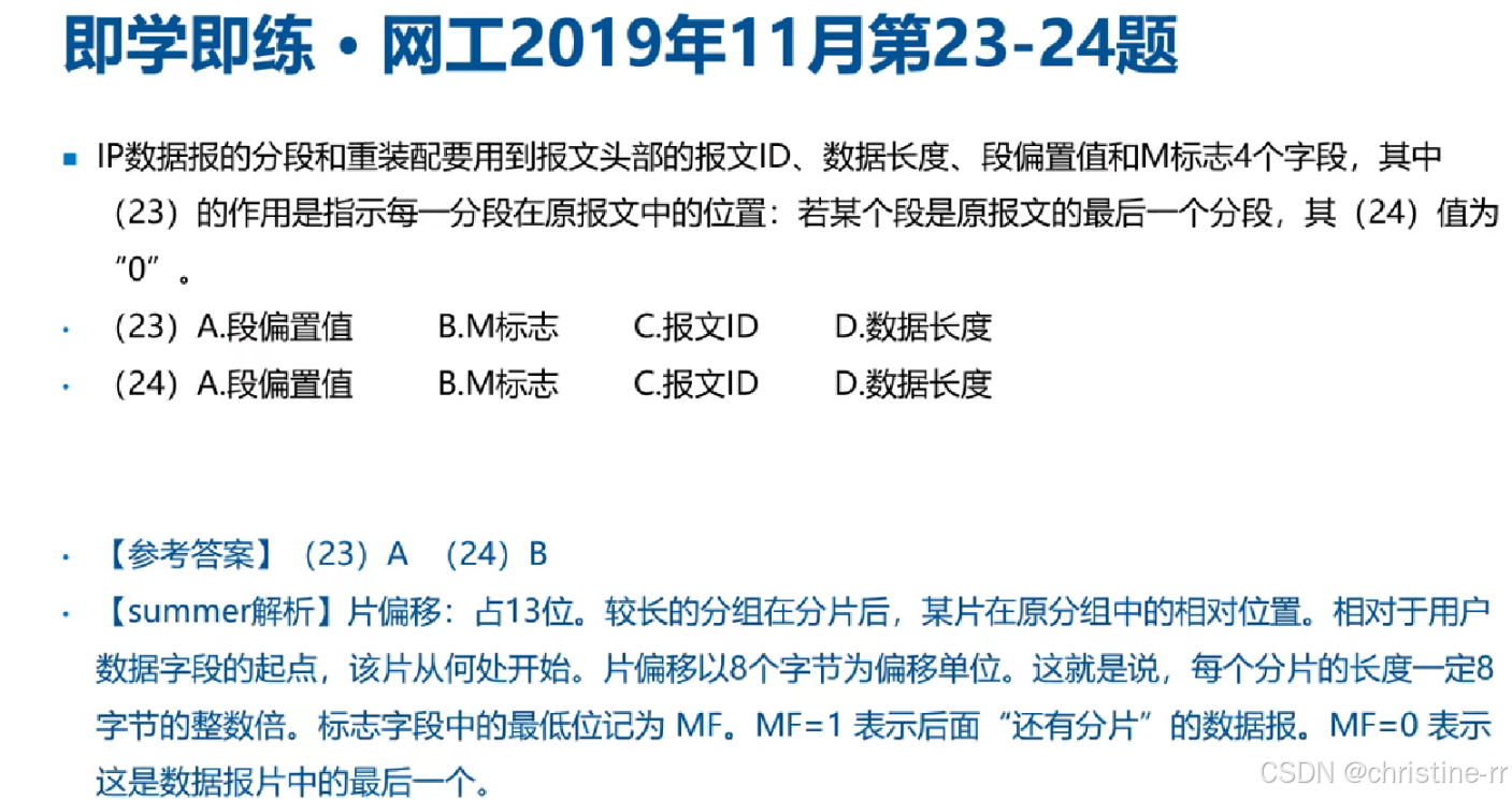典型错误:易混淆M标志与段偏置值的作用,需注意M标志只表示分片连续性。