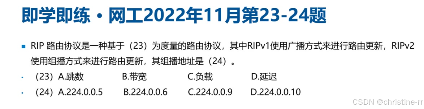 组播地址 | - OSPF:224.0.0.5(AllSPFRouter)、224.0.0.6(AllDRouter) - RIPv2:224.0.0.9 | RIPv1广播 vs. RIPv2组播(224.0.0.9) OSPF组播地址功能区分 | ⭐⭐⭐ |