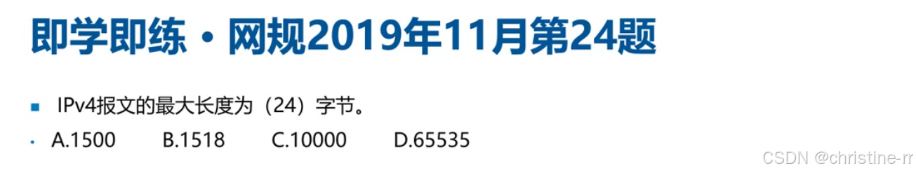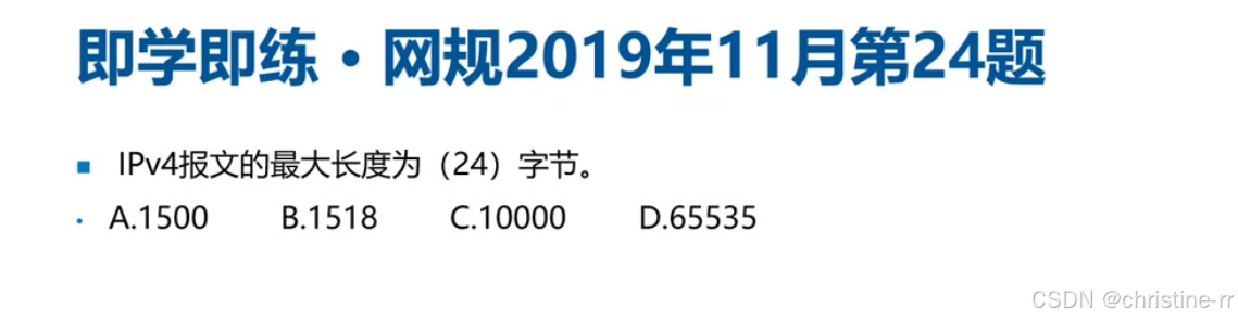 解析: IPv4报文的最大能表示为2^16=65536[0,65535],最大长度65535字节。