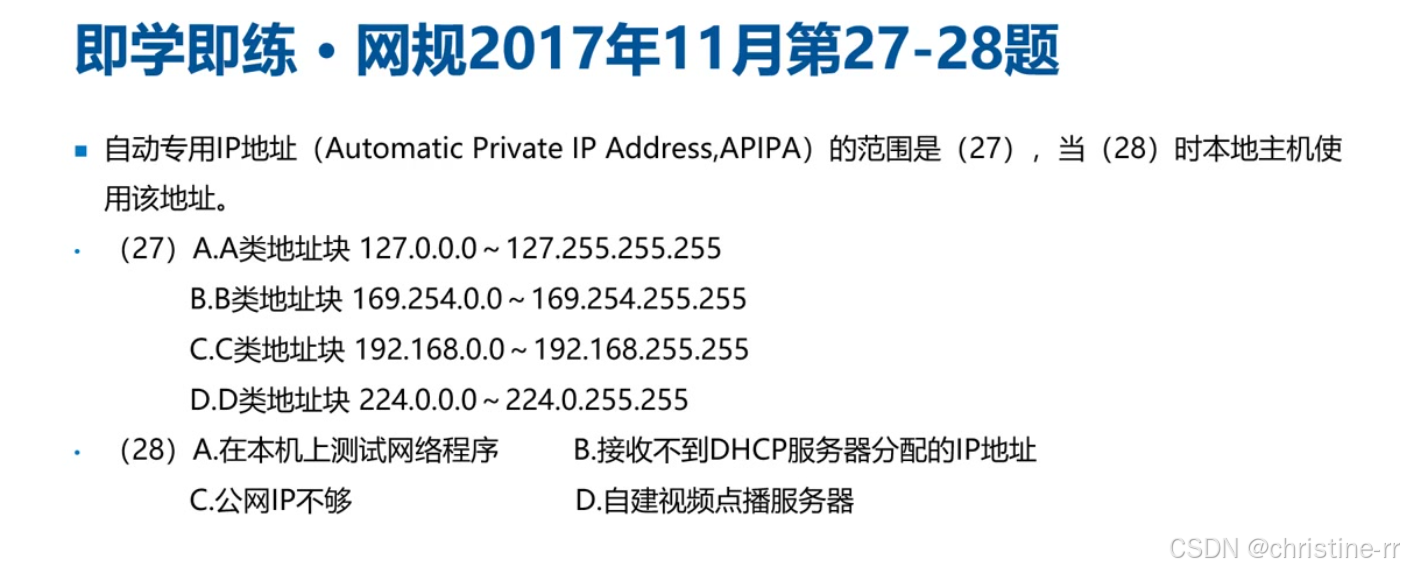 3)169.254.0.0/16 自动专用地址(APIPA):