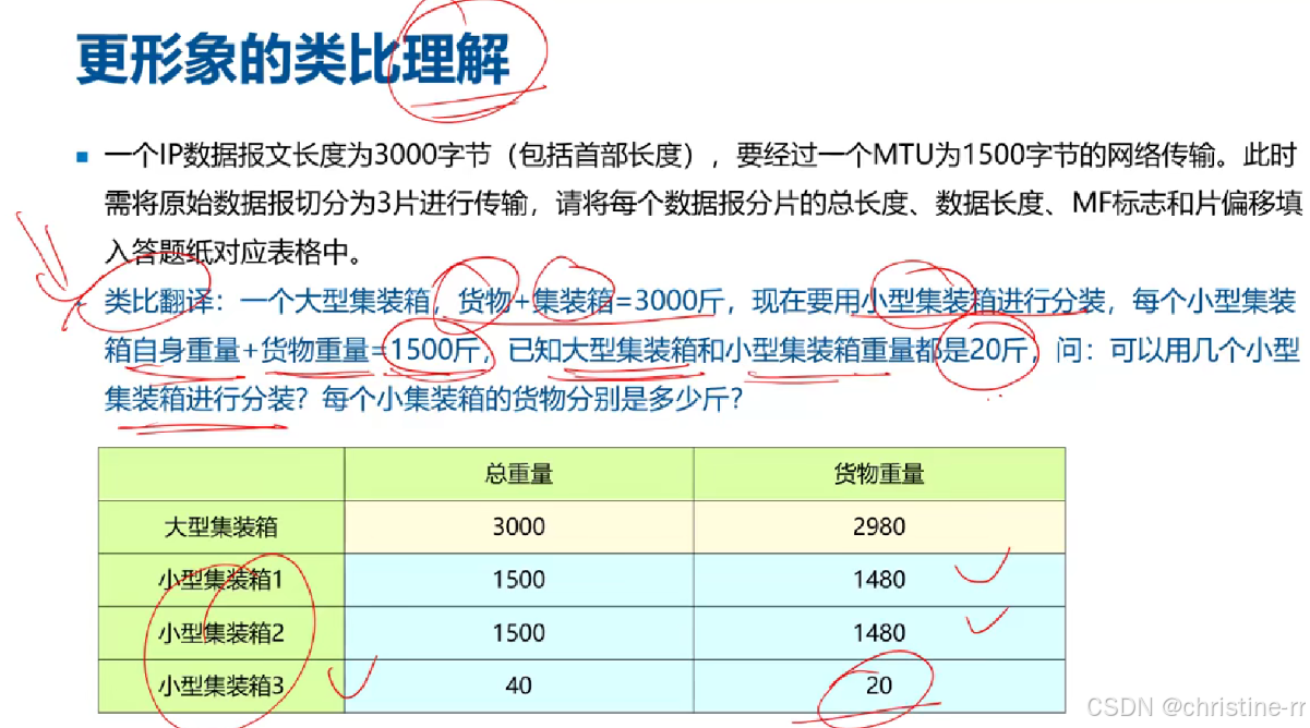 对应关系:货物重量=IP数据长度,箱体重量=IP头部长度