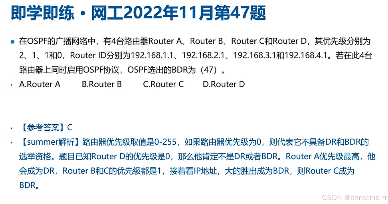 DR选举机制 | 非抢占式,优先级0不参与(默认1),相同比Router ID | 新加入高优先级设备不会立即成为DR | ★★★★ |