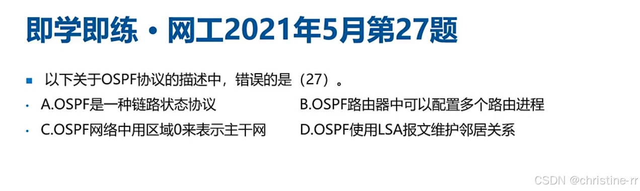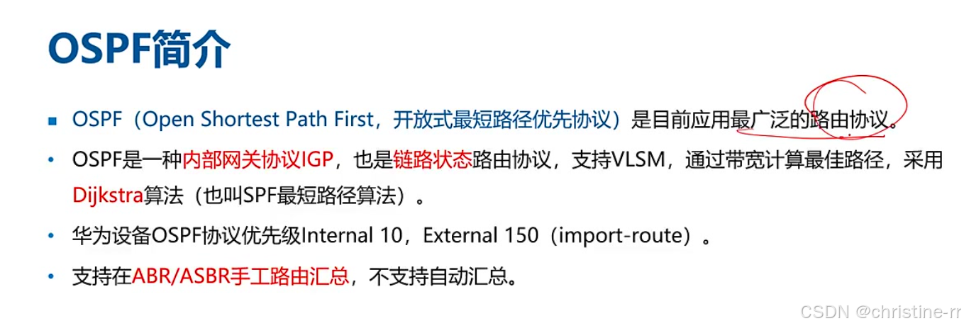 协议名称:Open Shortest Path First,开放式最短路径优先协议 协议地位: 目前应用最广泛的路由协议,考试占比约20分 协议类型: