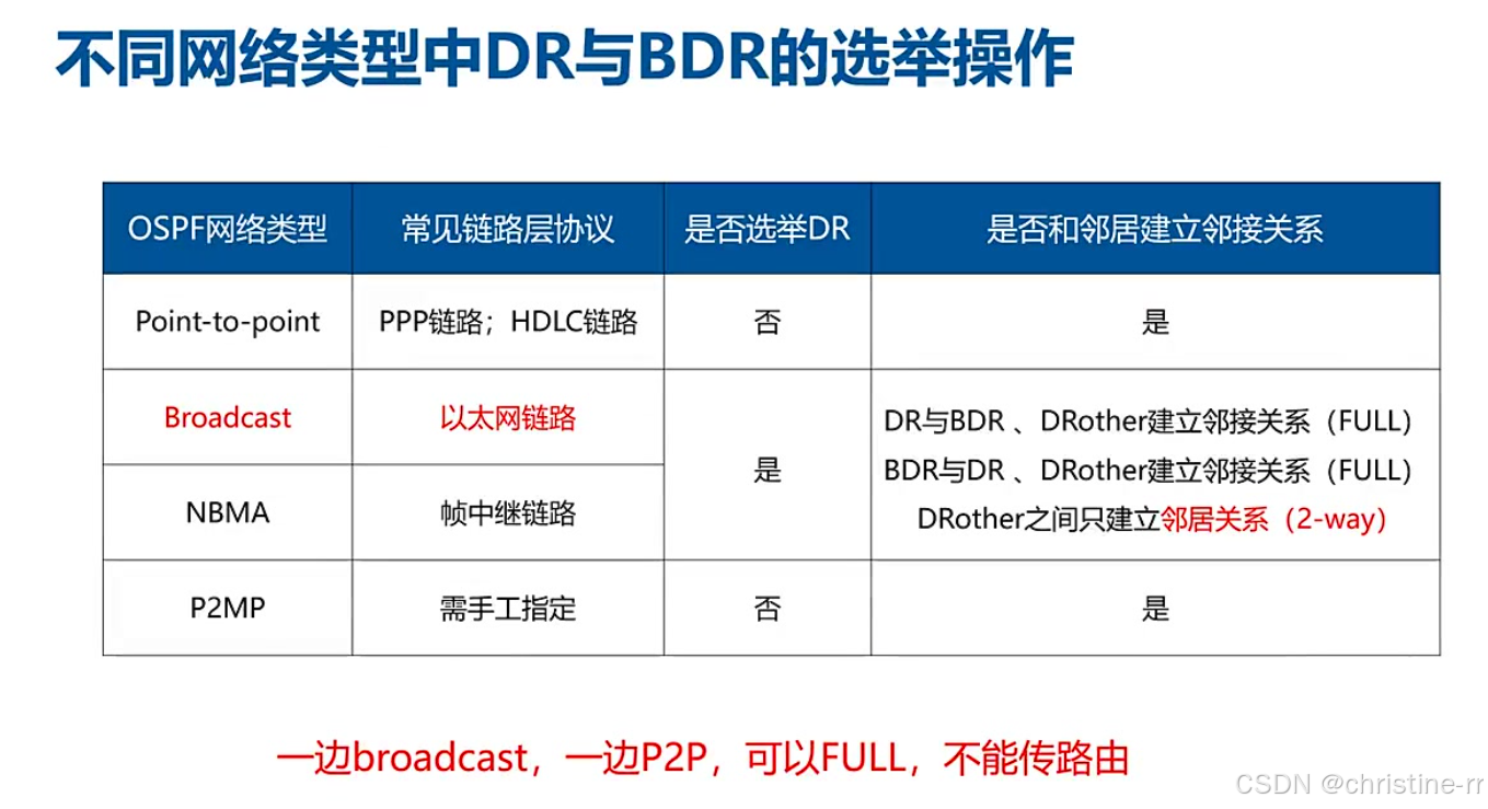 邻居状态 | 广播网络:DR/BDR与DROther间Full,DROther间2-Way | 网络类型不一致能建邻但不通路由 | ★★★★ |