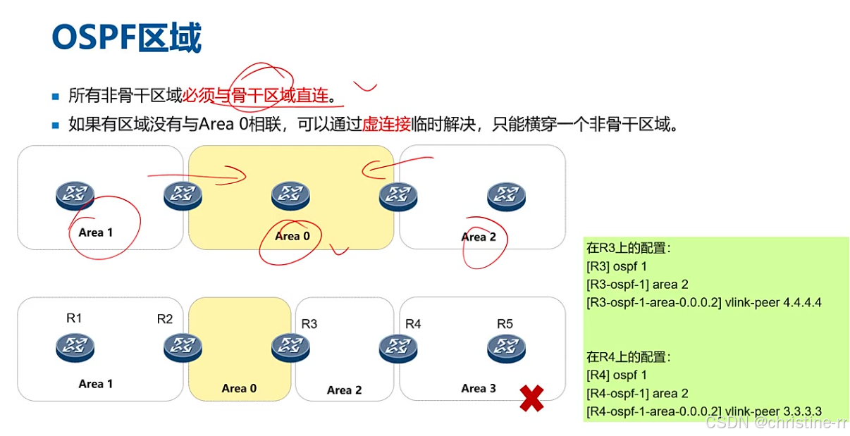必须使用Area 0或Area 0.0.0.0 区域1不是骨干区域(易错点),区域0才是骨干区域