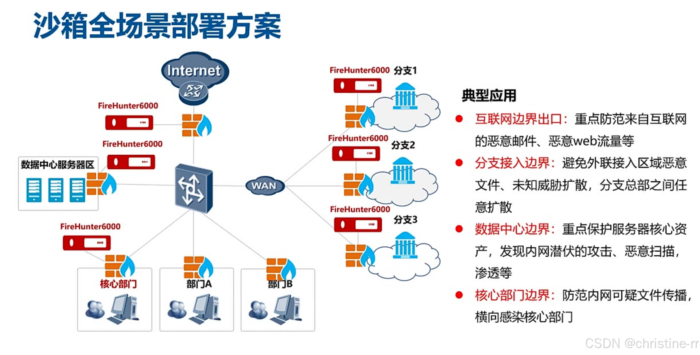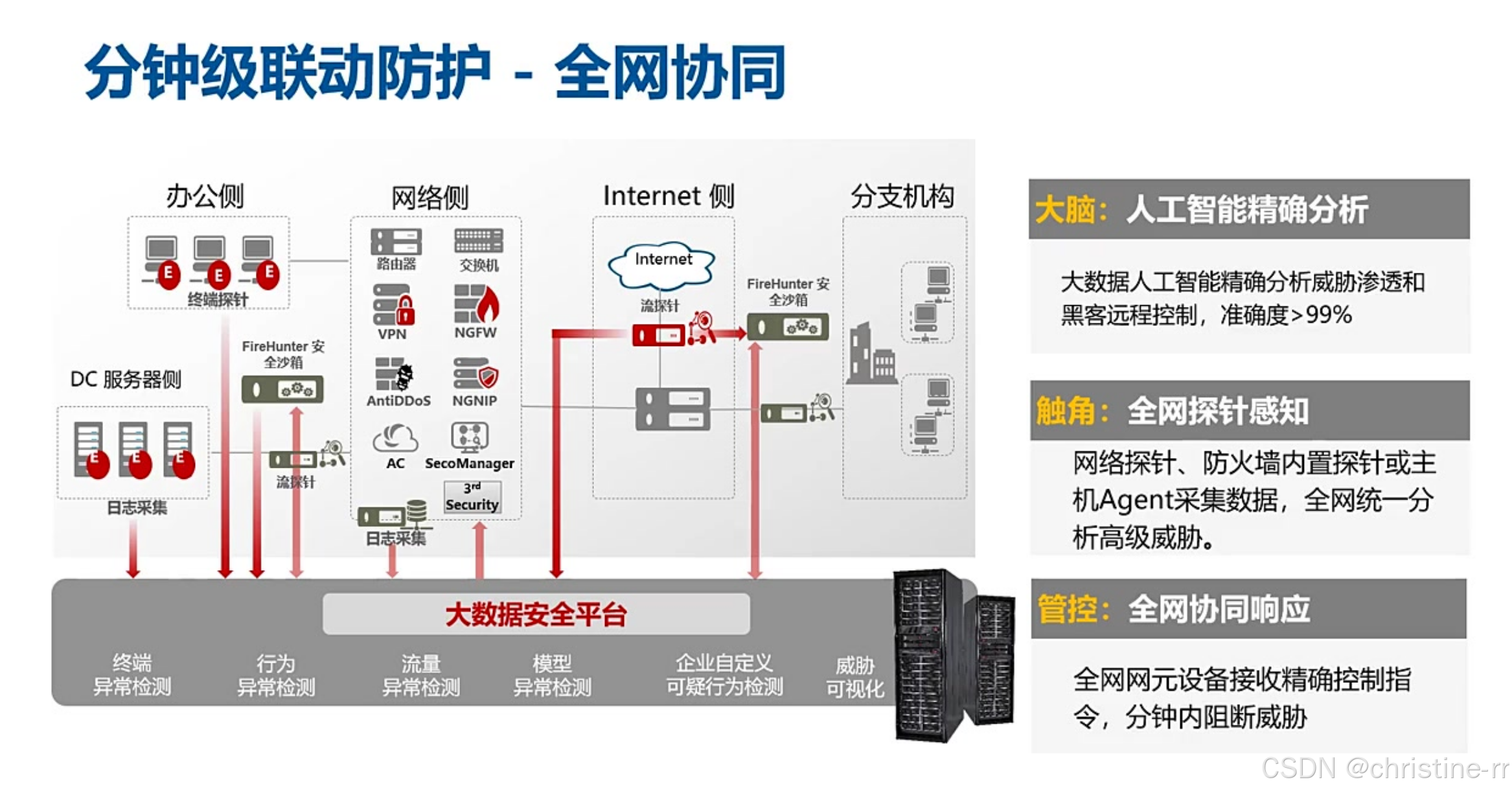 技术特点:前端探针(如华为防火墙/交换机内置探针)与后端分析平台协同工作