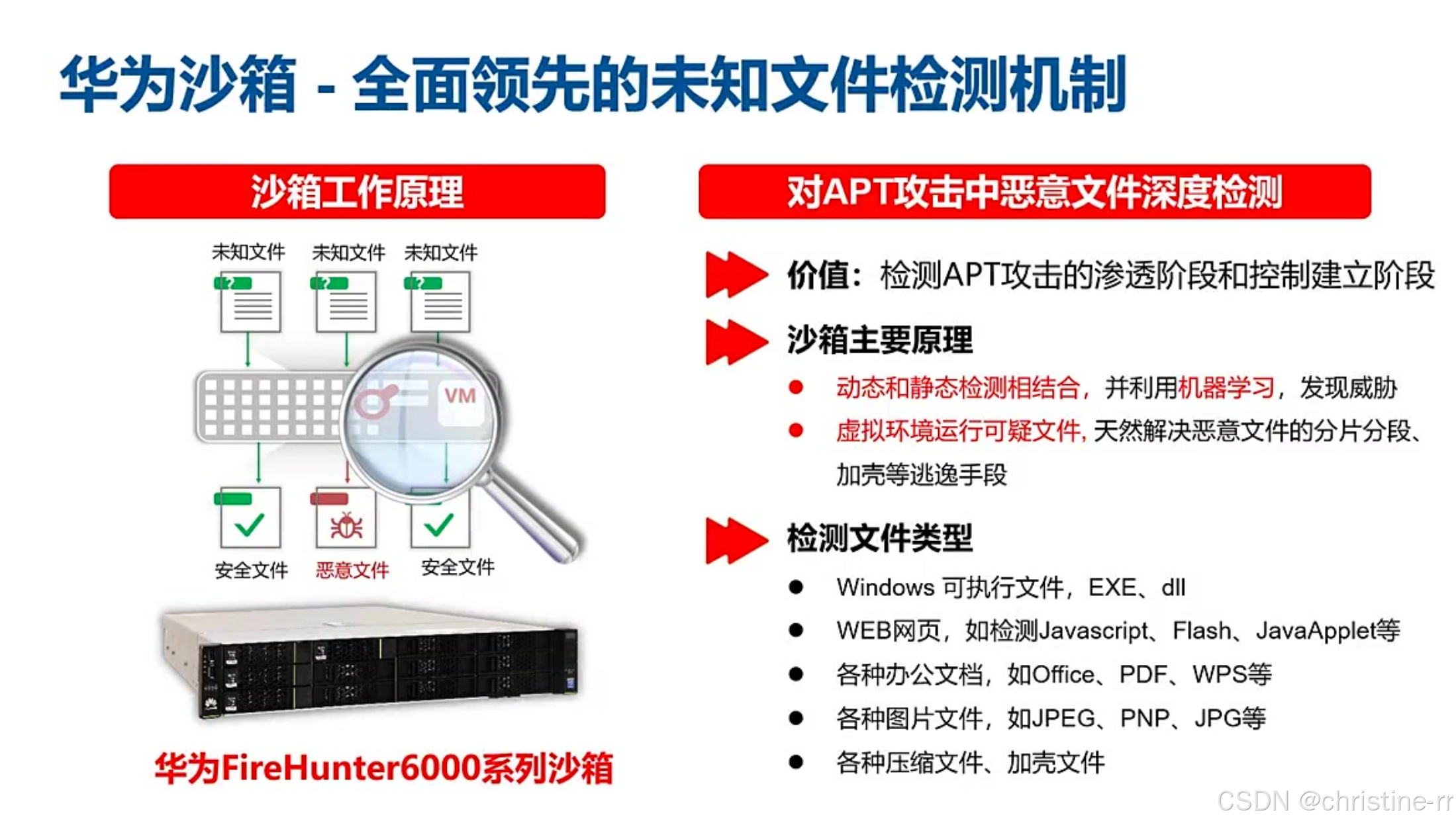 沙箱 | 虚拟环境运行可疑文件检测威胁(如可执行文件/PDF),部署于防火墙旁 | 检测原理:文件触发虚拟机崩溃→判定恶意 | ⭐⭐ |