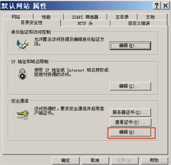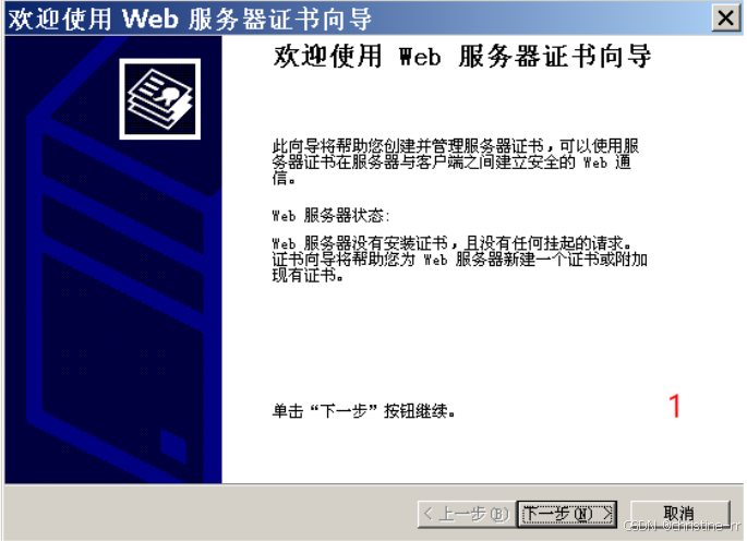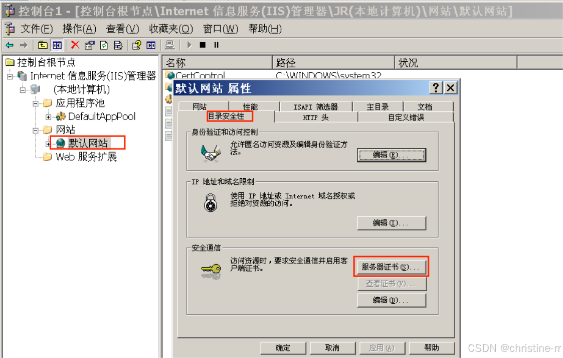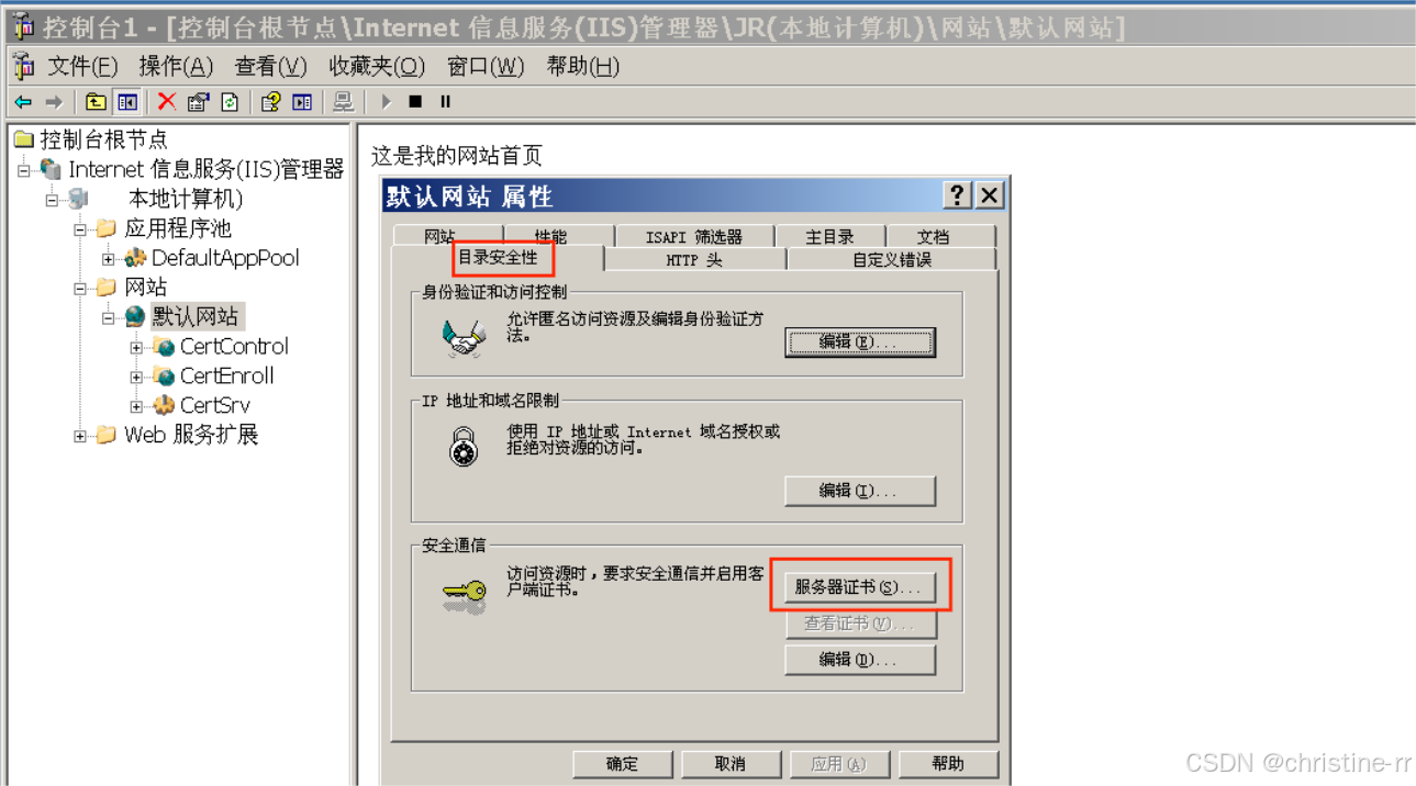 在“目录安全性”选项卡,选“服务证书”