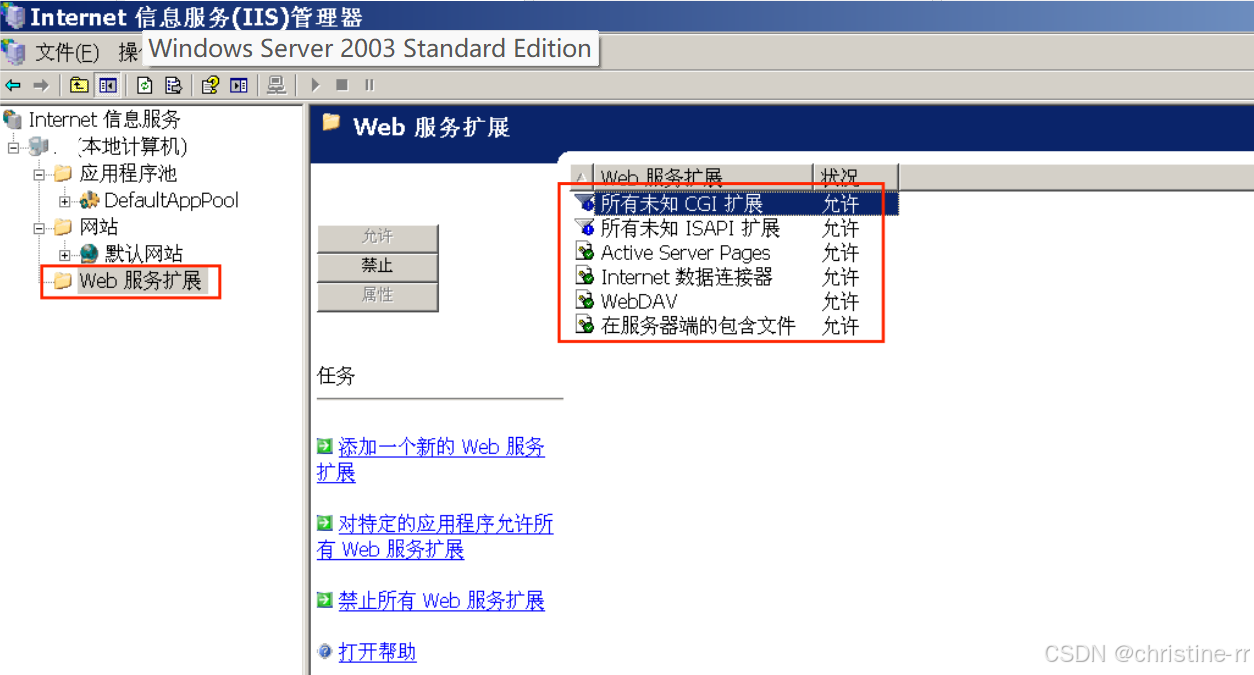进入:开始 -> 管理工具 ->IIS(Internet 服务器)- Web服务扩展 ,允许所有服务,之后回到Windows XP浏览器中打开颁发证书网页
