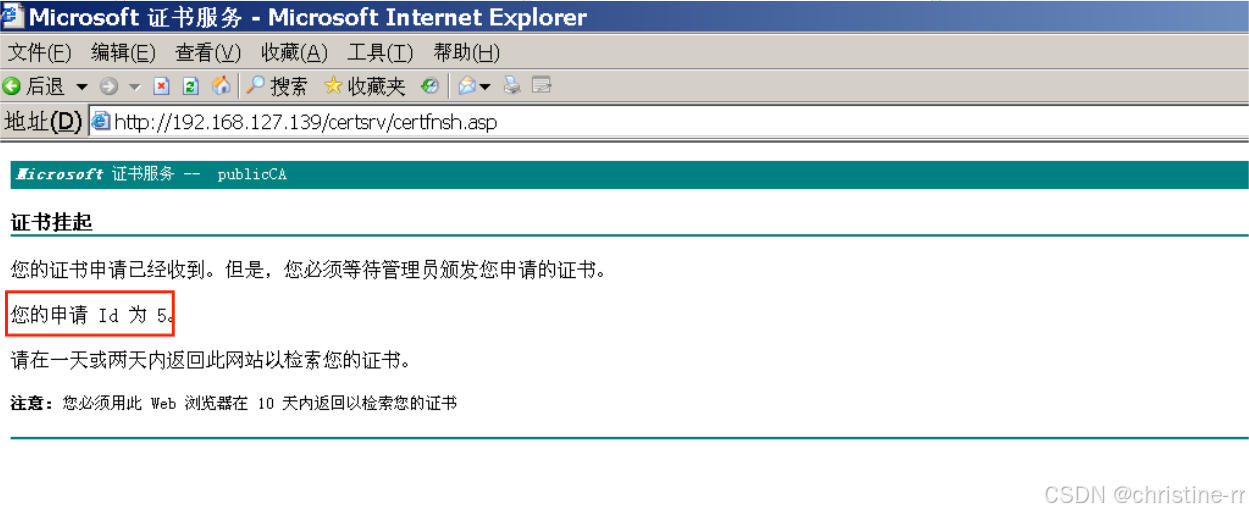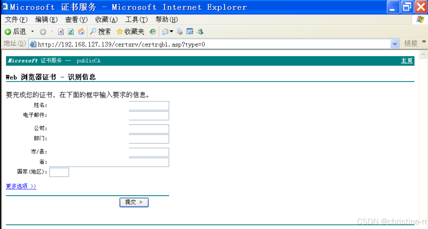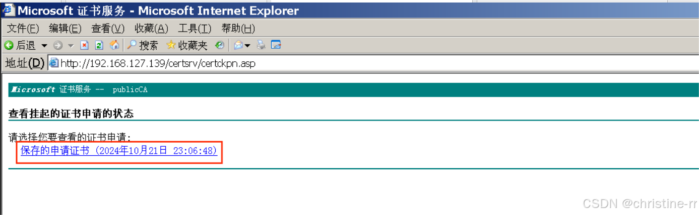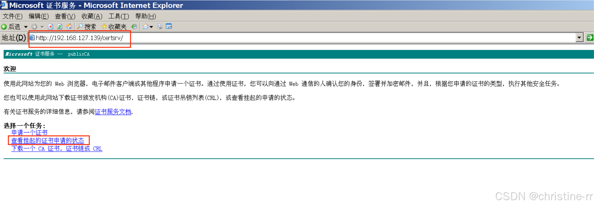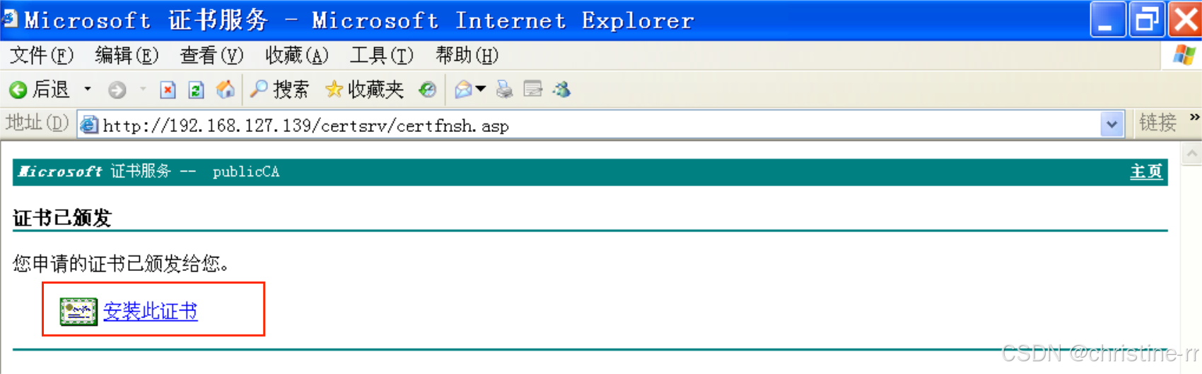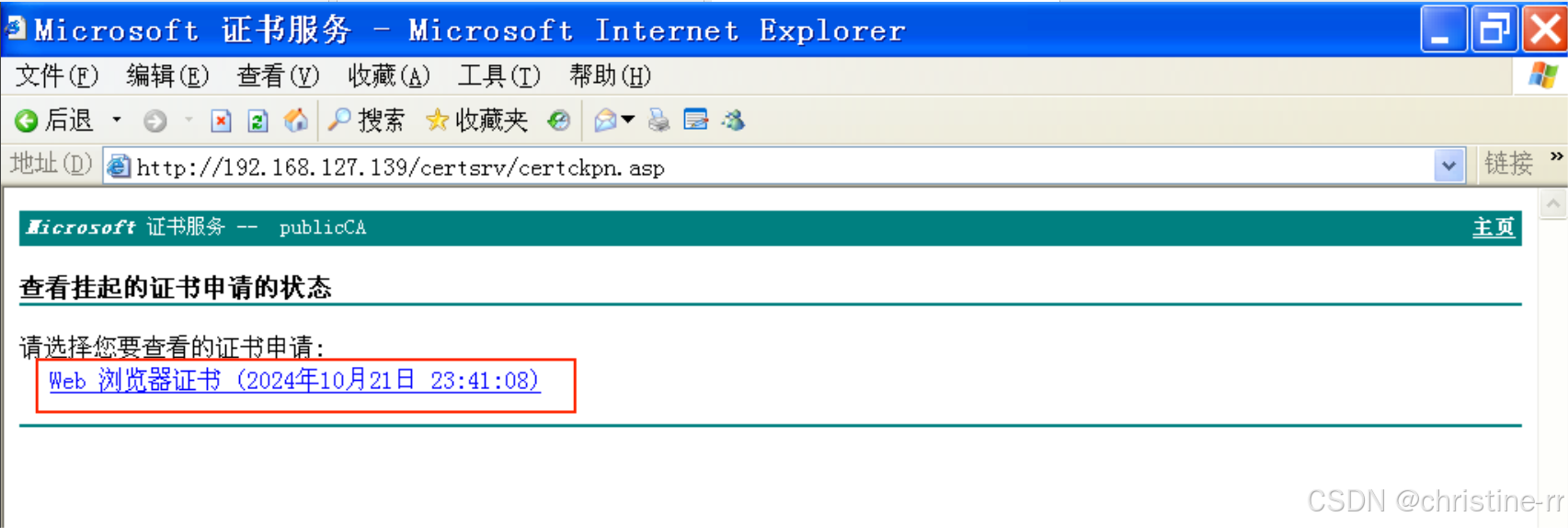http://192.168.127.139/certsrv/192.168.127.139为证书服务器Windows Server2003的IP地址