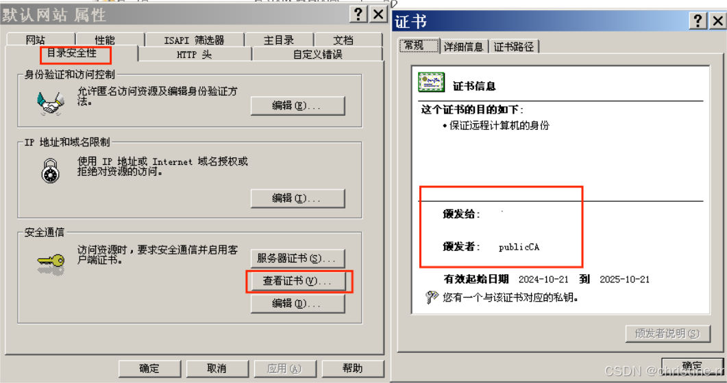 在证书服务器Windows Server2003中: