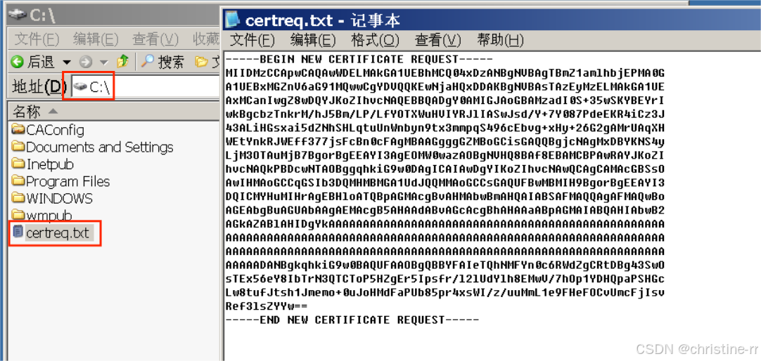 5.接着选“使用 base64 编码的 CMC 或 PKCS #10 文件提交 一个证书申请,或使用 base64 编码的 PKCS #7 文件续订证书申请。”