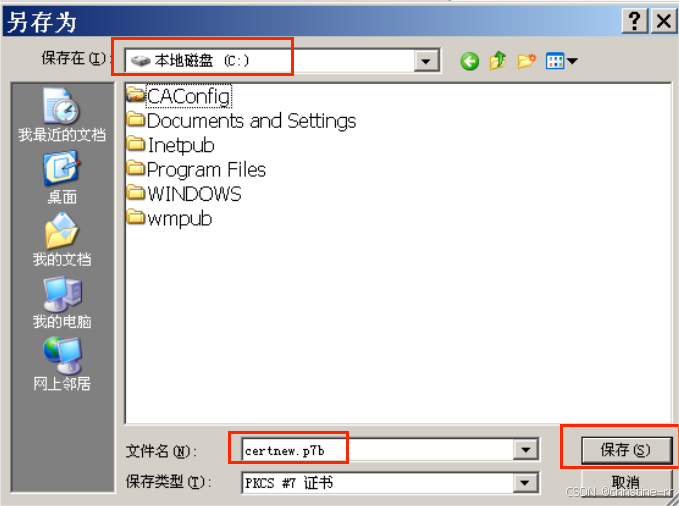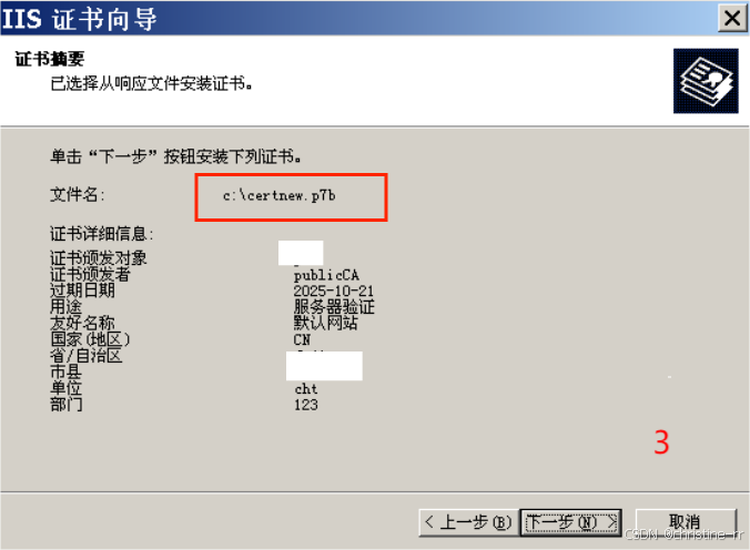 选择安装的证书的路径和名称:c:\certnew.p7b