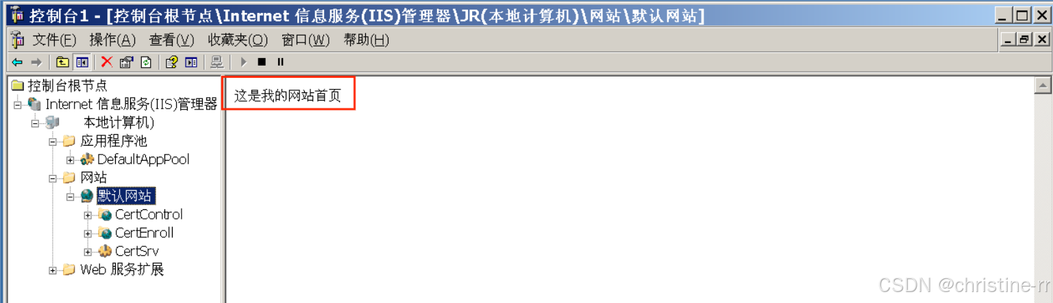 将index.html更改为默认网站首页成功后,点击“浏览”出现的首页如下: