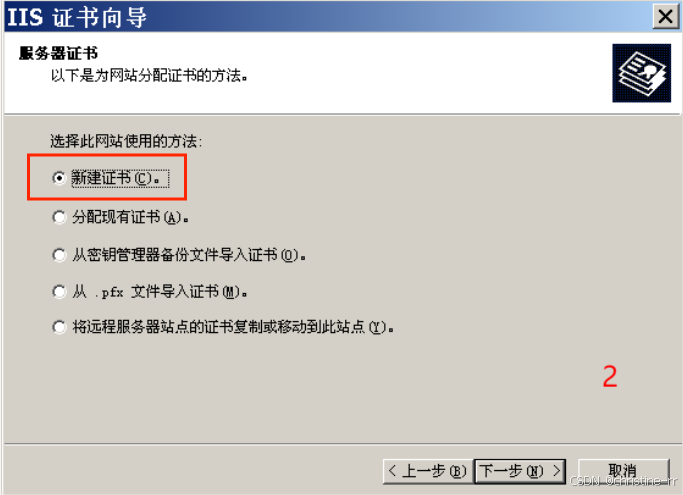 2.在“ISS证书向导”中点击下一步,“新建证书”,下一步