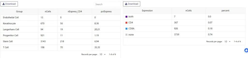 6:查看基因在不同细胞亚群的表达的细胞数量与比例。以及两个基因表达的细胞数量。