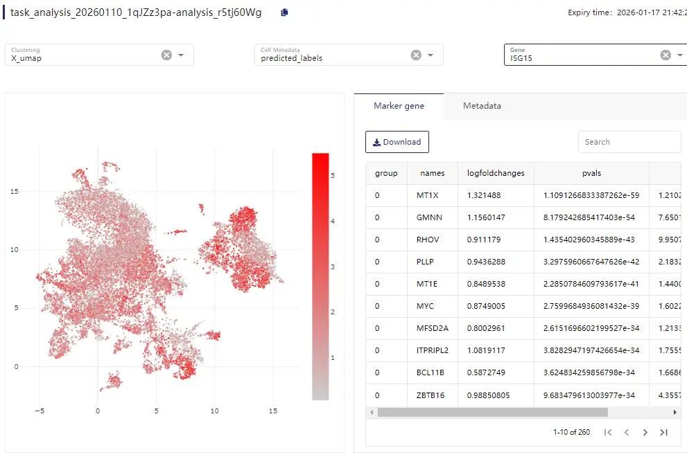 3:查看任务完成情况:分析任务在5分钟内完成。点击TaskID,进入分析结果界面。