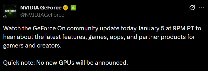 英伟达在X上的一纸公告,彻底击碎了「攒机党」最后的幻想:CES 2026将没有任何新GPU发布。