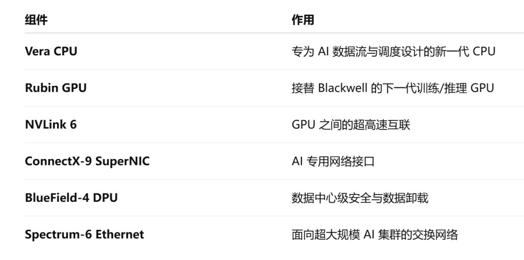 整个Rubin平台,由这6个关键组件构成。