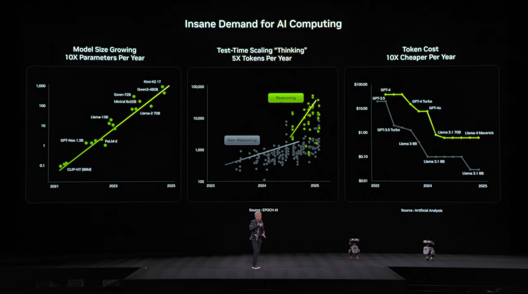 演讲现场,老黄告诉大家:AI所需的计算量急剧飙升,怎么办?不用怕,Vera Rubin,将解决我们面临的根本性挑战!